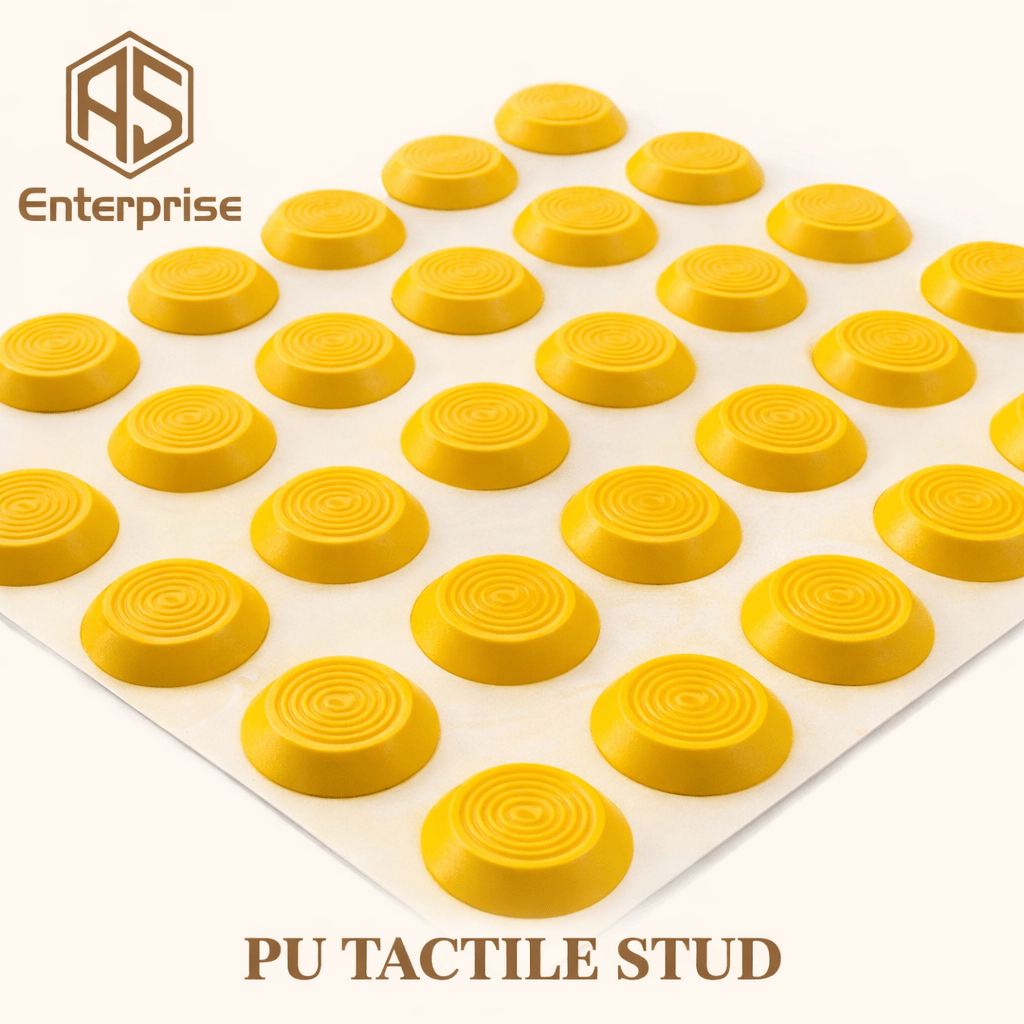 AS Enterprise (Sence Guide) PU Tactile Studs are designed to create effective warning surfaces for visually impaired pedestrians. These studs are available with high-bond self-adhesive tissue tape for easy installation or with stem fixing for drill-and-fix applications, ensuring strong grip and long-term stability.